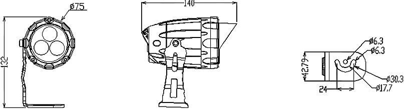 | 燈體材質:壓鑄鋁+鋼化玻璃+沖壓支架+高效光學級透鏡 | 燈體尺寸:Φ75*140mm (可帶遮光罩) |