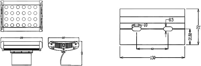 | 燈體材質(zhì): 壓鑄鋁+鋼化玻璃+沖壓支架+高效光學(xué)級(jí)透鏡 | 燈體尺寸:  207*280*163mm |