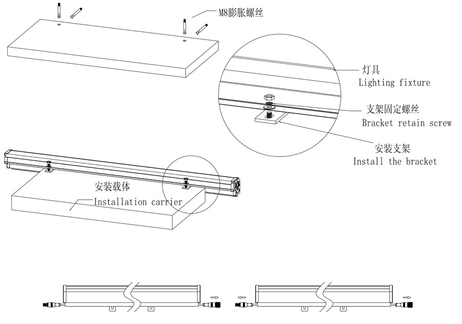 | 出線方式:出線超出燈體20CM | 電源安裝方式:一體內置式 | ||