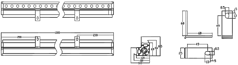 | 燈體材質:鋁型材+鋼化玻璃+鋁支架 | 燈體尺寸:Φ69*69*1000mm(長度可定制) | ||